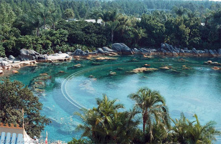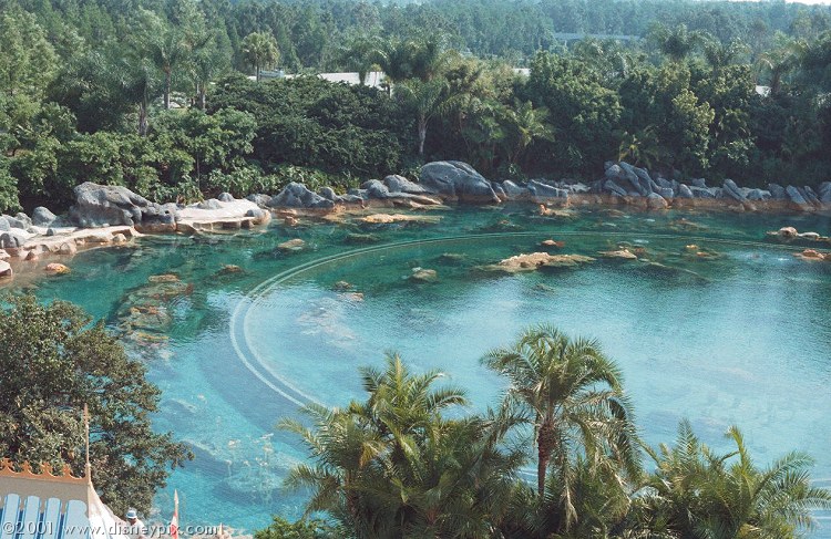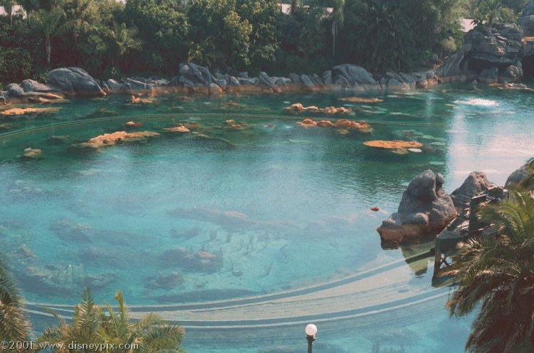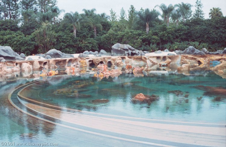 This is the area where the maintenance divers suited up. Those big pipes up top probably fed the waterfalls.