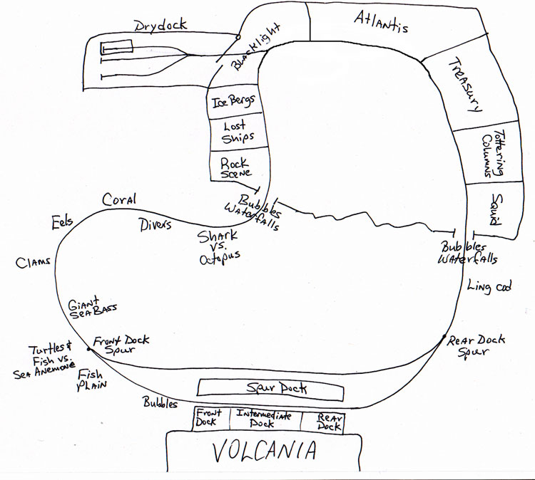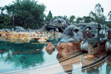 Mike found this awesome aerial shot of the ride (looks like it was taken post shutdown), it gives you a good overview of the ride. The dry-dock is visible to the lower left of the lagoon, and notice how large the caverns warehouse is!