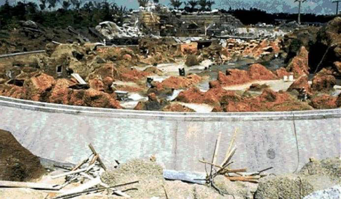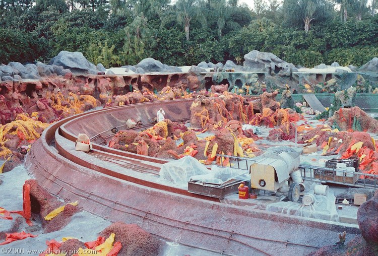 The lagoon drained for cleaning. The harsh Florida sun and chlorine in the water would completely eat off the paint and it had to be redone every few years. Bert once walked the whole track while it was drained. All the animatronics were being repainted and touched up by hand. Bert has seen things you and I can only dream of.