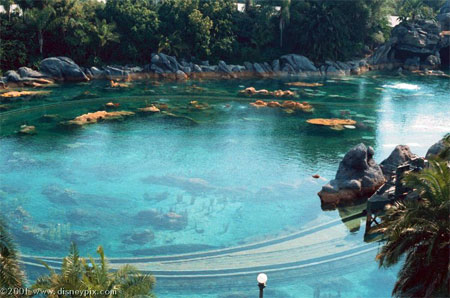 This real live diver (I swear) is actually repairing a turtle from the "Submarine Voyage" ride in California, but if hadn't just told that you you'd never have known; same damn turtle. I don't know how that guy didn't flip out, being in the tank with all those freaky animatronics. What if his co-workers forgot about him and shut down the park before he got out? What if he was stuck there all night?! God it's too scary to think about.