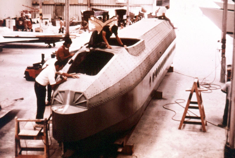 "Just a Shell - 20K hull construction at Morgan Yacht Company in Clearwater Florida prior to being moved to Tampa Shipyard for final assembly." Bob Gurr, Imagineer